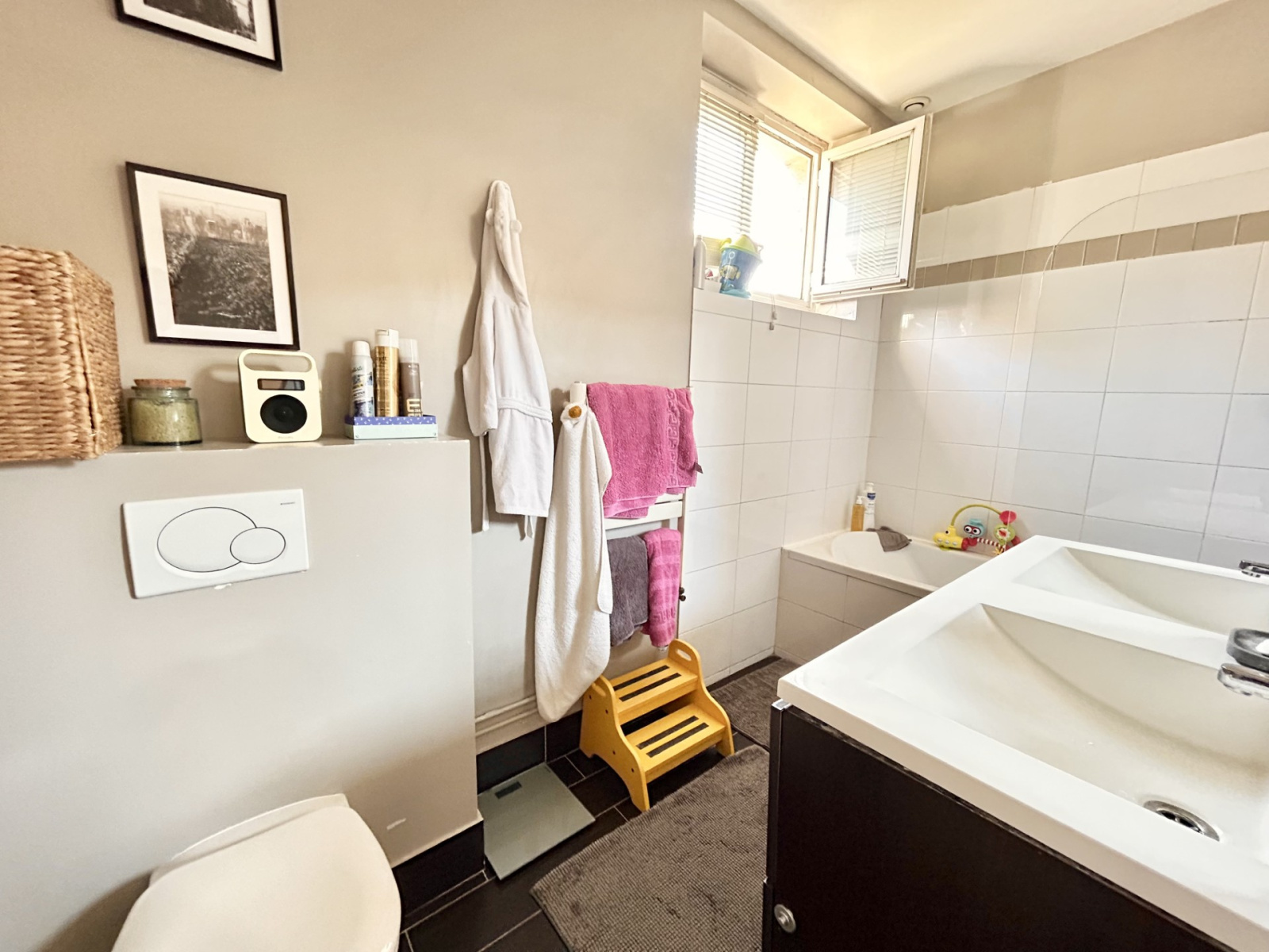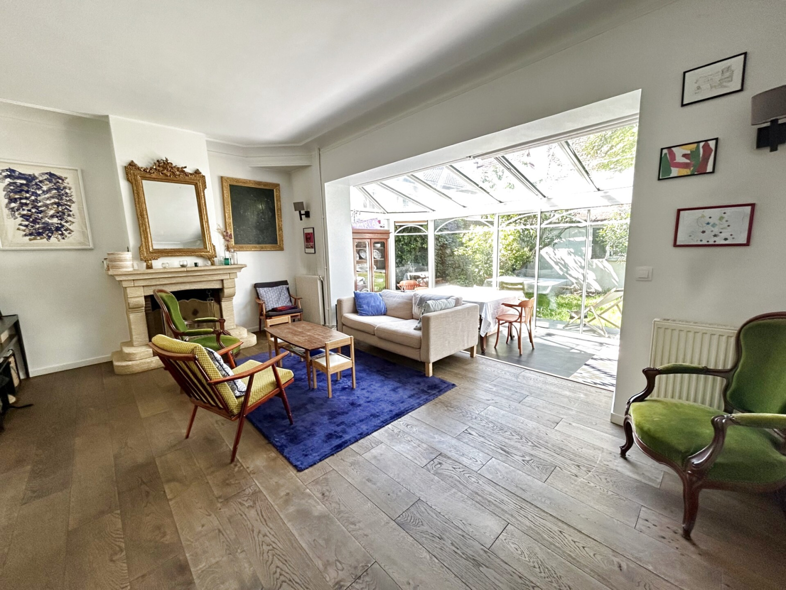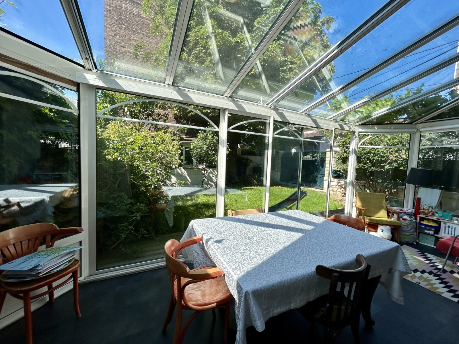 Le jardin, totalement au calme et parfaitement exposé et une belle terrasse pavée protégée par une jolie pergola en fer fleurie offrent un superbe espace de détente .