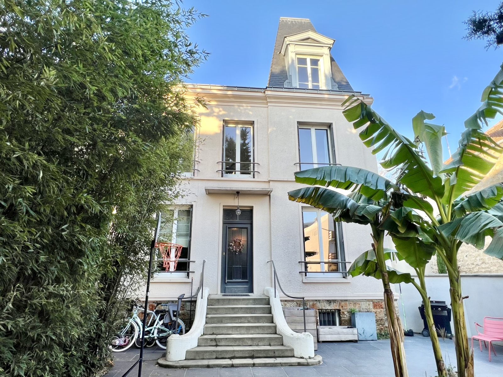 Idéalement située entre les gares de Bois-Colombes et des Vallées. A quelques pas des écoles et de la Mairie de Bois-Colombes. Magnifique maison de Maître 1900 en parfait état et ayant conservé le charme de l'ancien. D'une superficie de 180m² avec son joli jardin arboré plein sud. Entrée, bureau, double séjour, cuisine, arrière-cuisine et wc. Au 1er étage, trois belles chambres, salle de bains/ douche et wc. Au dernier étage, trois chambres et salle d'eau avec wc. Aujourd'hui, cet étage est dédié aux parents avec deux chambres et un immense dressing. Remarquable hauteur sous plafond. Sous-sol total avec buanderie, chaufferie et salle de jeux. Entrée voiture.