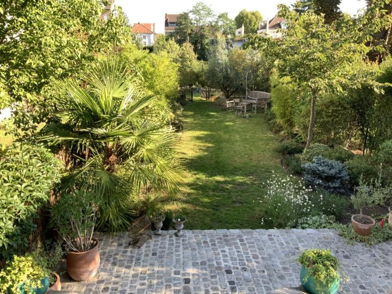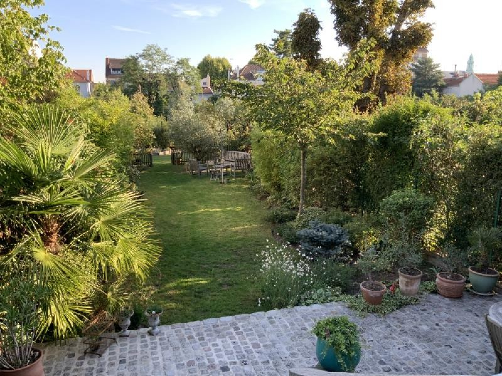 BOIS-COLOMBES - LES VALLEES. Idéalement située entre les gares des Vallées et de Bécon-Les-Bruyères. Au coeur d'une petite allée privée et aux pieds des écoles. Magnifique maison traversante de 165m² sur une parcelle de 495m². Entrée, double séjour avec cheminée, cuisine dînatoire sous~une très belle véranda ouvrant sur la salle à manger. 1er étage : une grande suite parentale avec dressing et salle de bains, une chambre et wc. 2ème étage : trois chambres, salle d'eau avec wc. Sous-sol total avec garage, cave, atelier, buanderie et chaufferie. Très beau jardin bucolique sans aucun vis-à-vis.