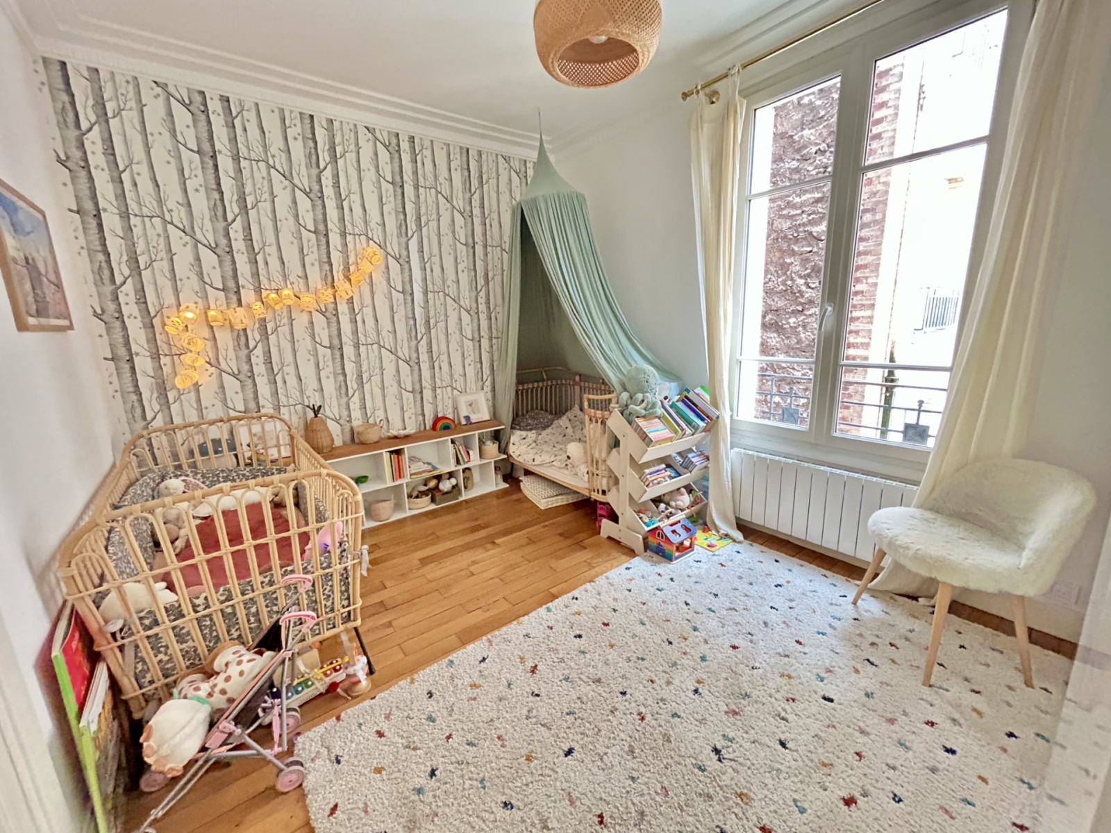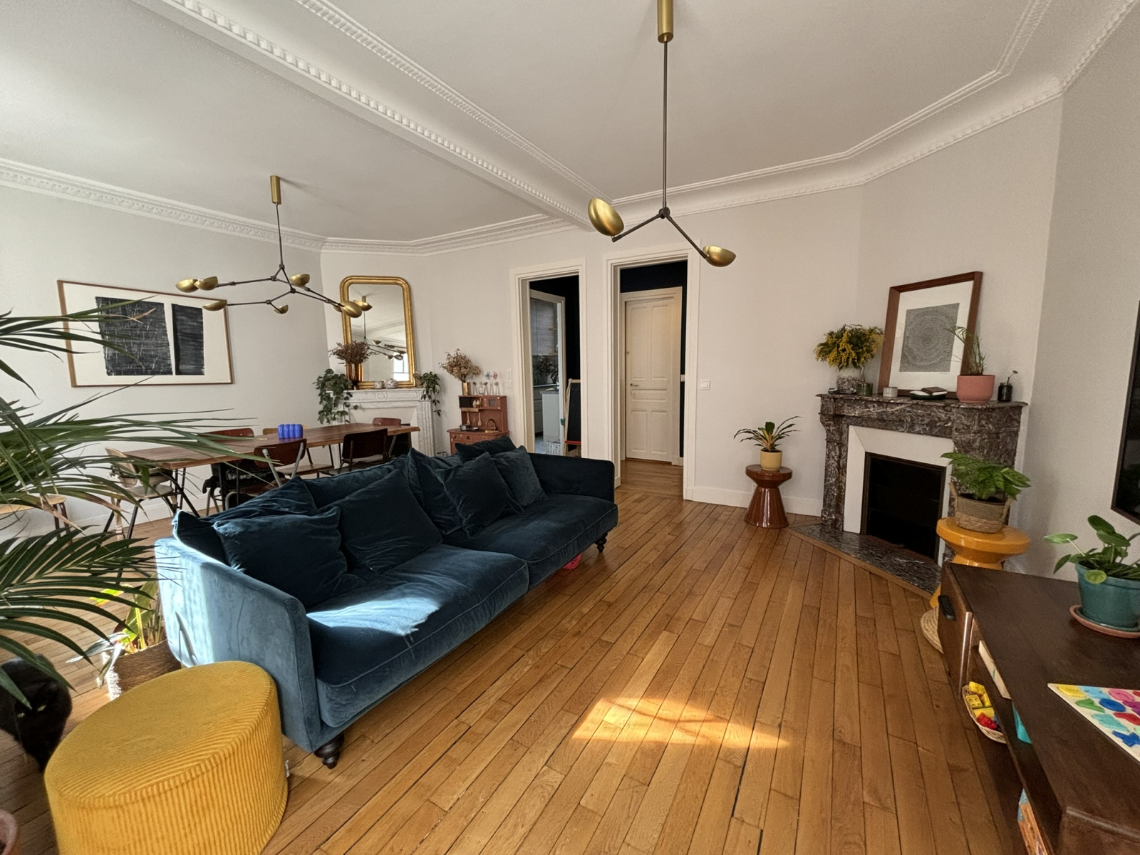 Magnifique appartement totalement rénové et ayant conservé tout le charme de l'ancien, parquet, moulures et cheminées. Entrée avec beaucoup d'espace de rangements, 2 très grandes chambres, double séjour/ salle à manger de 27m², cuisine, salle d'eau et wc.