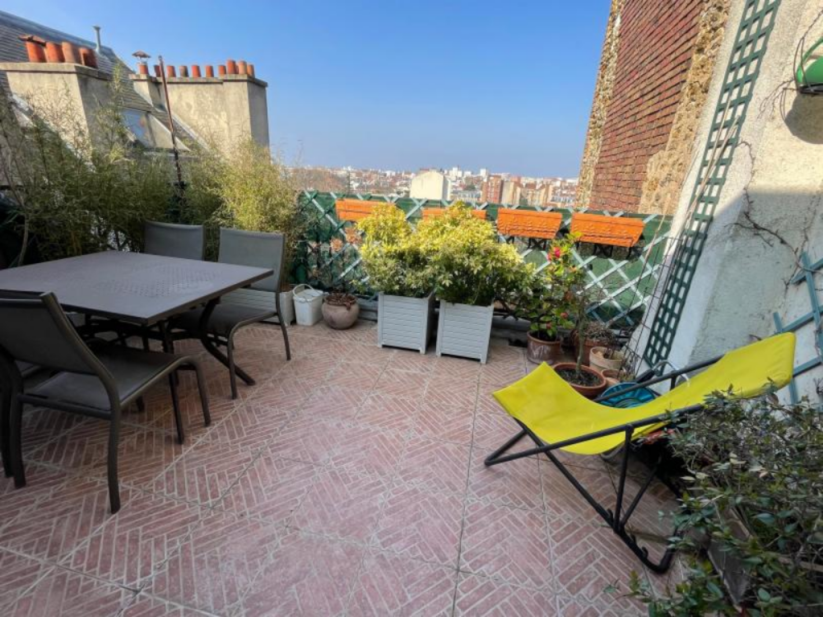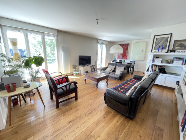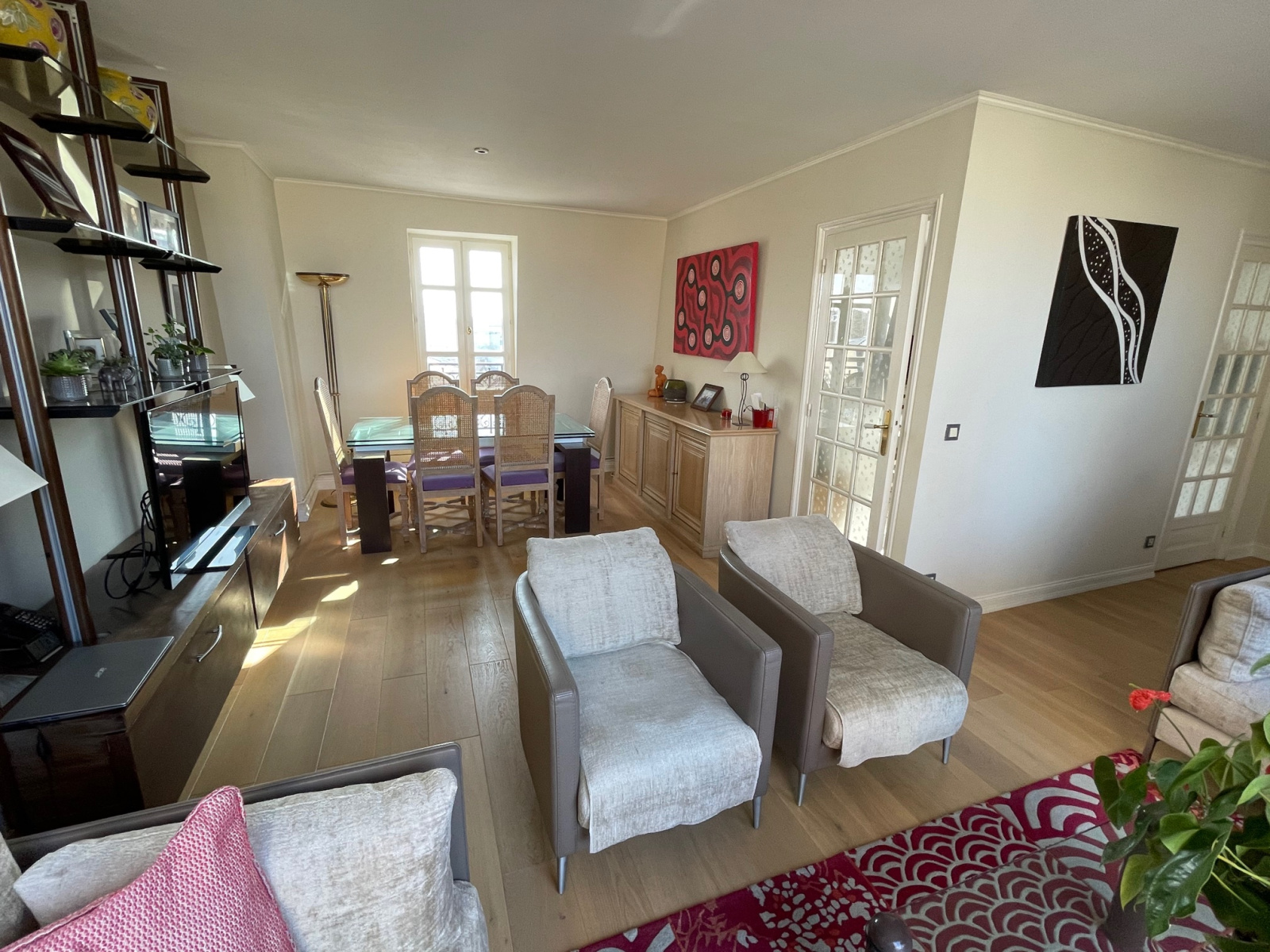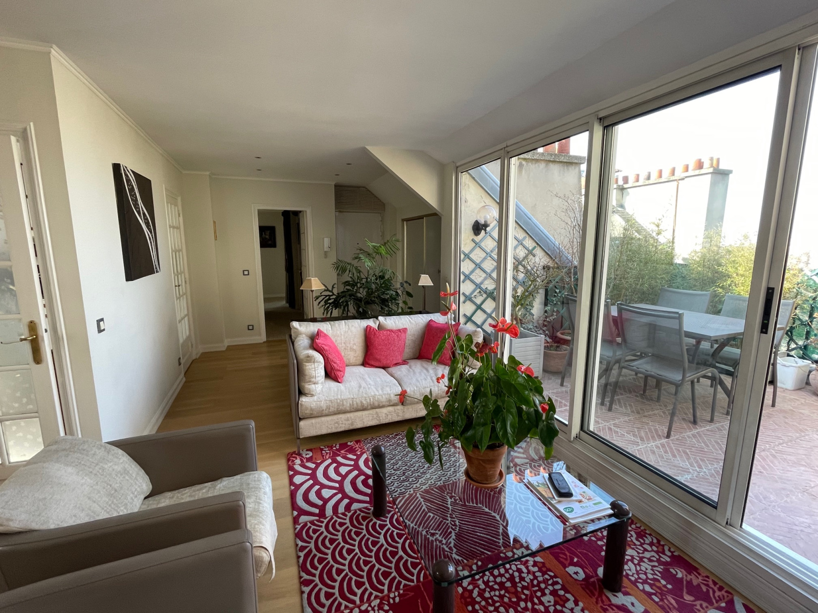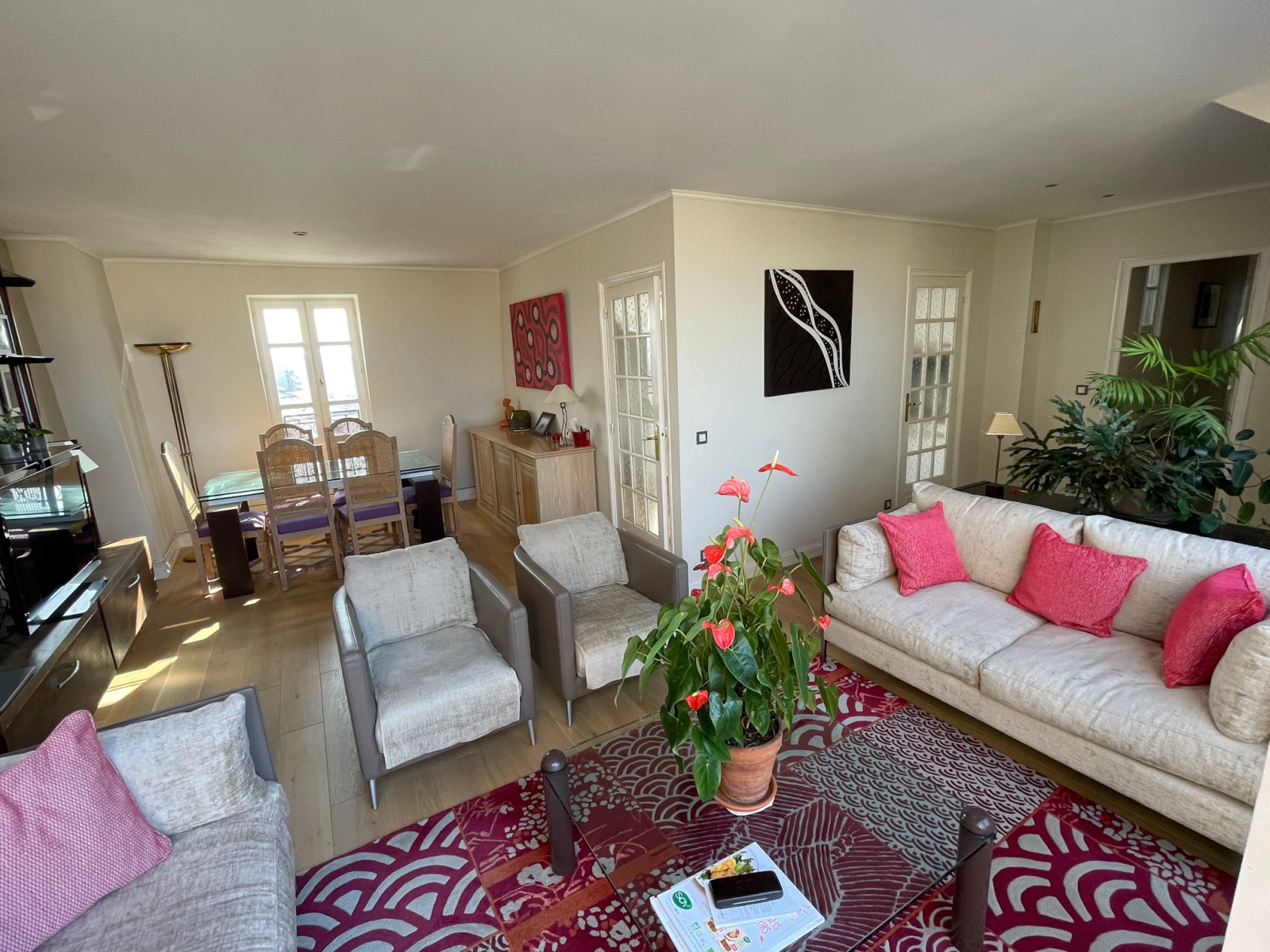 BOIS-COLOMBES MAIRIE. Au 6ème et dernier étage avec ascenseur d'un bel immeuble bourgeois situé sur la place de la mairie, chaleureux appartement en excellent état général disposant d'une belle terrasse de 12m² exposée ouest : entrée avec grand placard, double séjour traversant, cuisine dînatoire séparée, dégagement nuit avec trois chambres, salle de bains et wc. Grande cave en sous-sol. Rare sur le secteur ! Possibilité d'acquérir une place de parking.