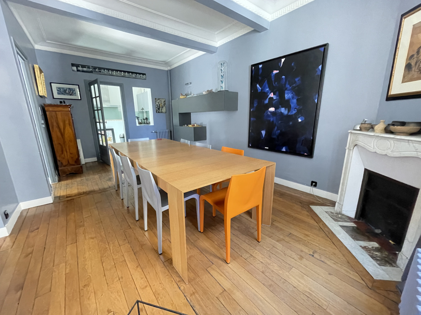 Dans le très prisé quartier Bac et à quelques pas de la rue des Bourguignons (très commercante), du marché, de la gare de Bois-Colombes et des écoles recherchées. Magnifique maison de caractère alliant le charme de l'ancien et l’attrait de la modernité. Dès l'entrée vous serez séduit par la préservation des matériaux anciens. Le très bel espace de vie ouvert avec son séjour et sa salle à manger vous permettra de profiter pleinement de vos moments en famille ou entre amis. La cuisine dinatoire ouvrant de plain-pied sur la terrasse permet aisément de profiter de l'extérieur. Le 1er étage est dédié aux enfants avec ses trois grandes chambres et sa salle de bains/ wc indépendante. Le second étage est quant à lui le havre de paix des parents avec sa suite parentale offrant également un espace de travail, un grand dressing et une salle d'eau/wc. Le sous-sol total est aménagé avec sa pièce télé, sa buanderie, ses nombreux rangements et une cave à vin. La dépendance d'environ 30m² offre de nombreuses possibilités, notamment un lieu dédié aux invités, aux enfants, au télétravail ou encore aux loisirs. L'espace extérieur arboré vous invite à profiter du moindre rayon de soleil. Vous aurez la possibilité de stationner deux véhicules.