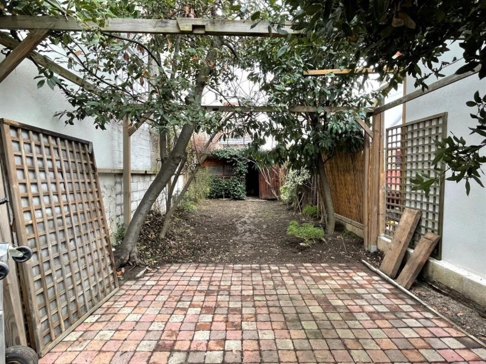 COLOMBES - VALLEES. Au coeur du quartier des Vallées. A deux pas de la gare, des commerces et des écoles. Dans une petite copropriété, jolie maison de 69 m² carrez comprenant : entrée, cuisine ouverte sur un double sejour avec poële donnant de plain pied sur un beau jardin de 80 m² sans vis-à-vis et wc. A l'étage : chambre, salle de bains et petite chambre ou bureau. Au dernier étage : belle chambre sous combles. DPE en attente.