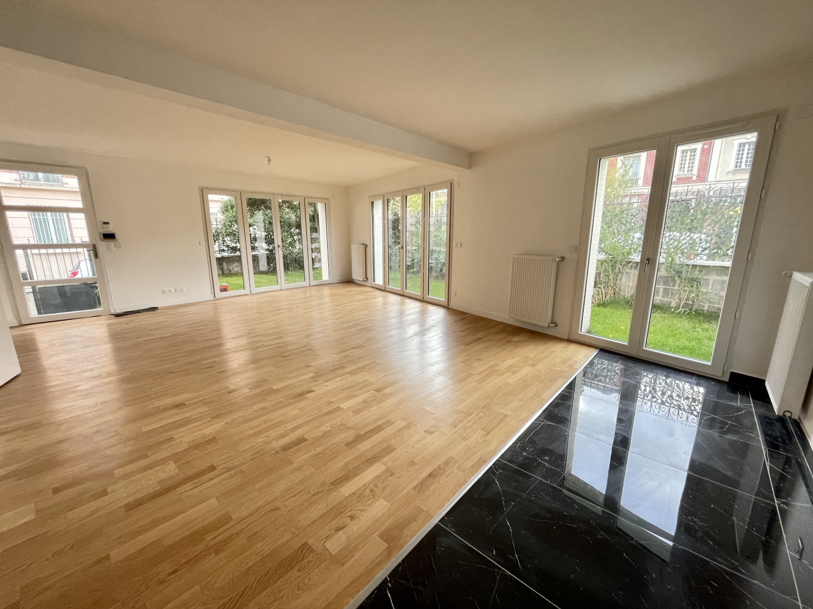 A proximité de la gare de Bois-Colombes, dans une copropriété de quatre lots, belle maison, offrant au rez-de-chaussée entrée sur séjour avec cuisine américaine, d'une surface de 44 m², buanderie et wc, au premier étage deux chambres, salle de bains, salle d'eau et wc, au deuxième étage deux chambres, salle de bains, salle d'eau et wc. A cela s'ajoute un jardin arboré de 126.3 m².