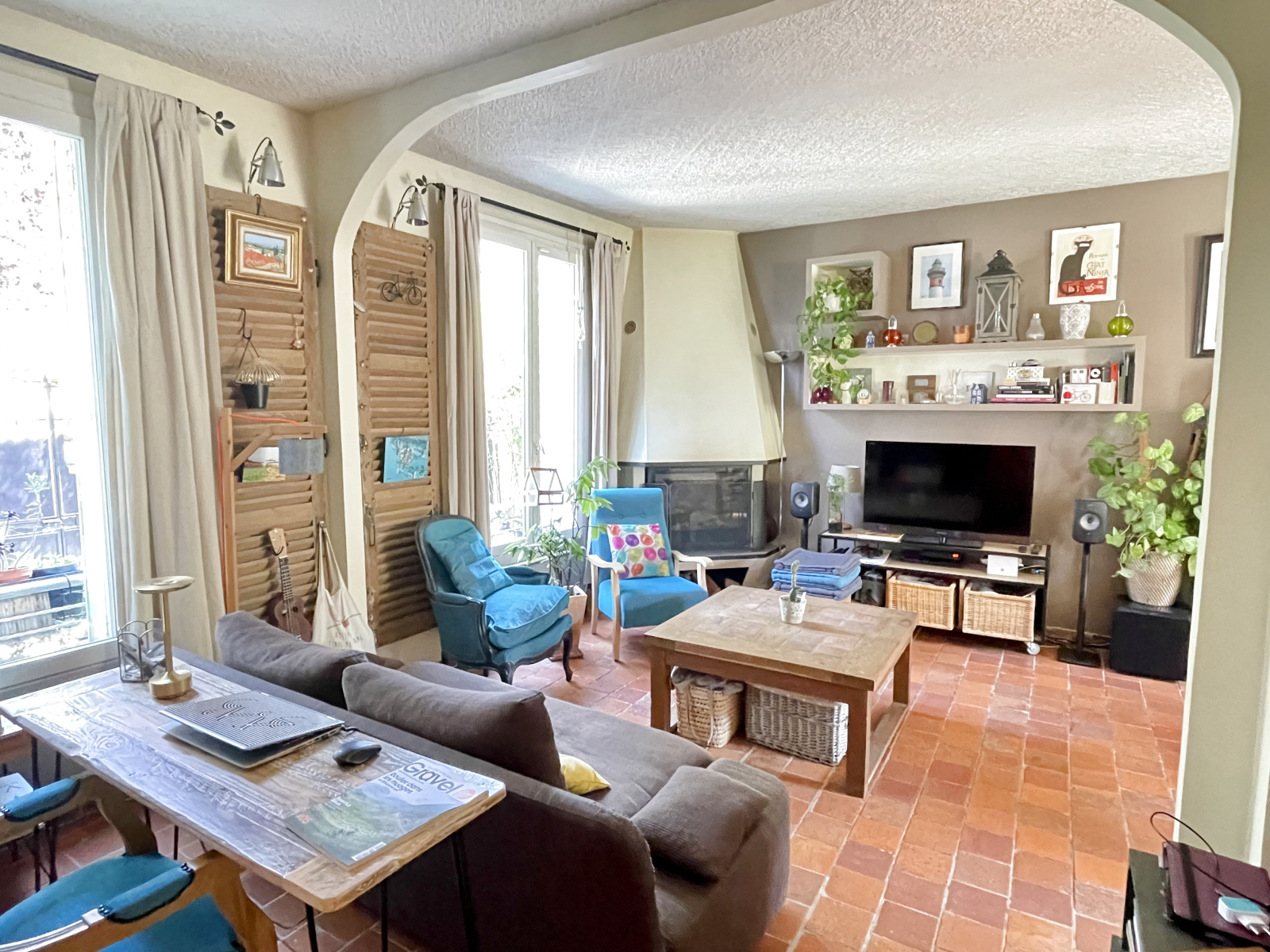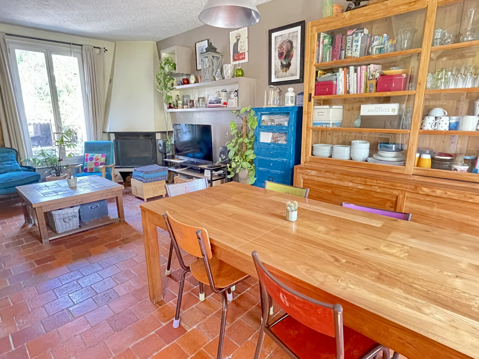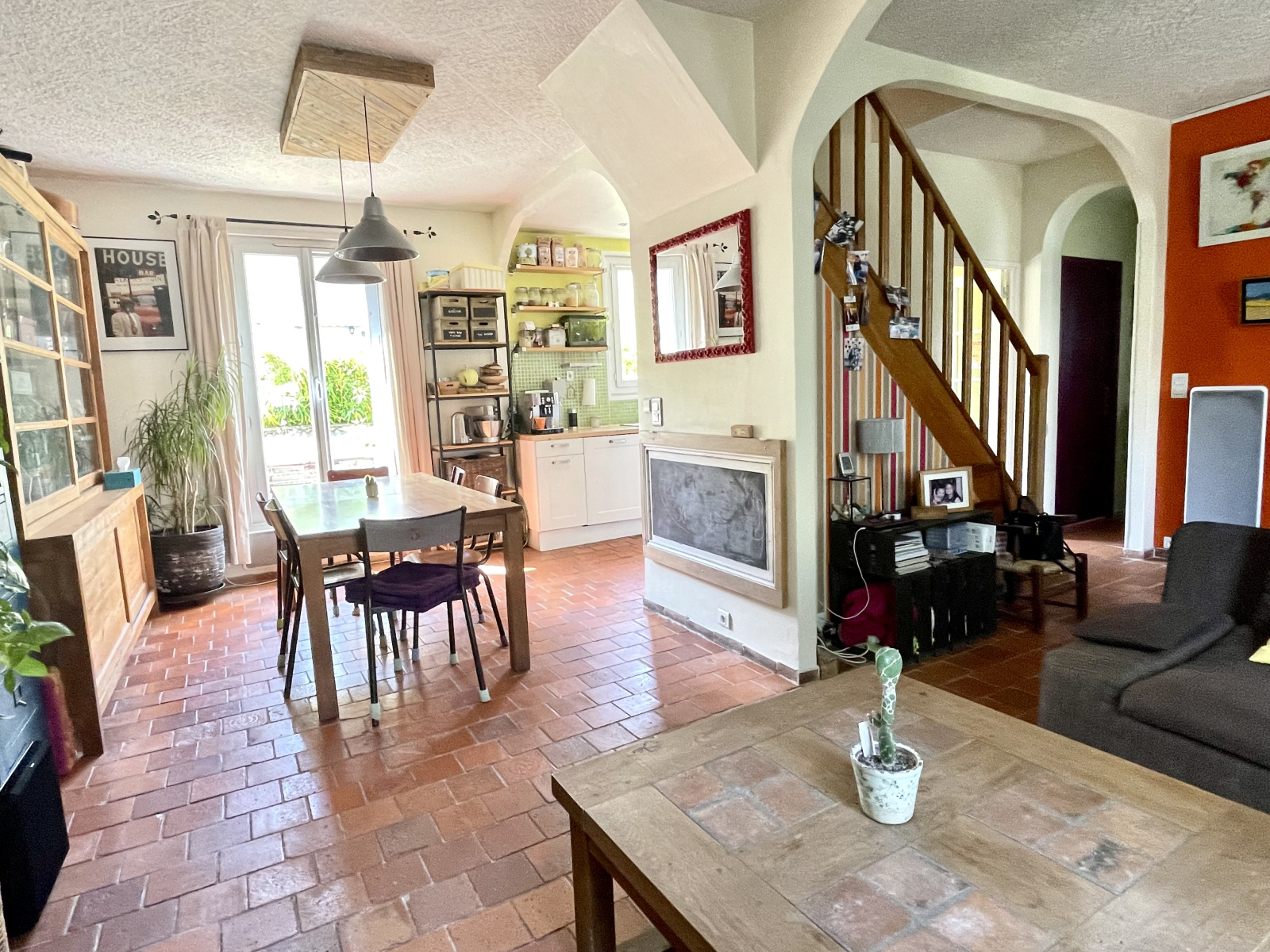 Au rez-de-chaussée, entrée avec placards, belle pièce de vie composée d'un séjour avec insert, une salle à manger et une cuisine ouverte. Une salle d'eau avec wc.