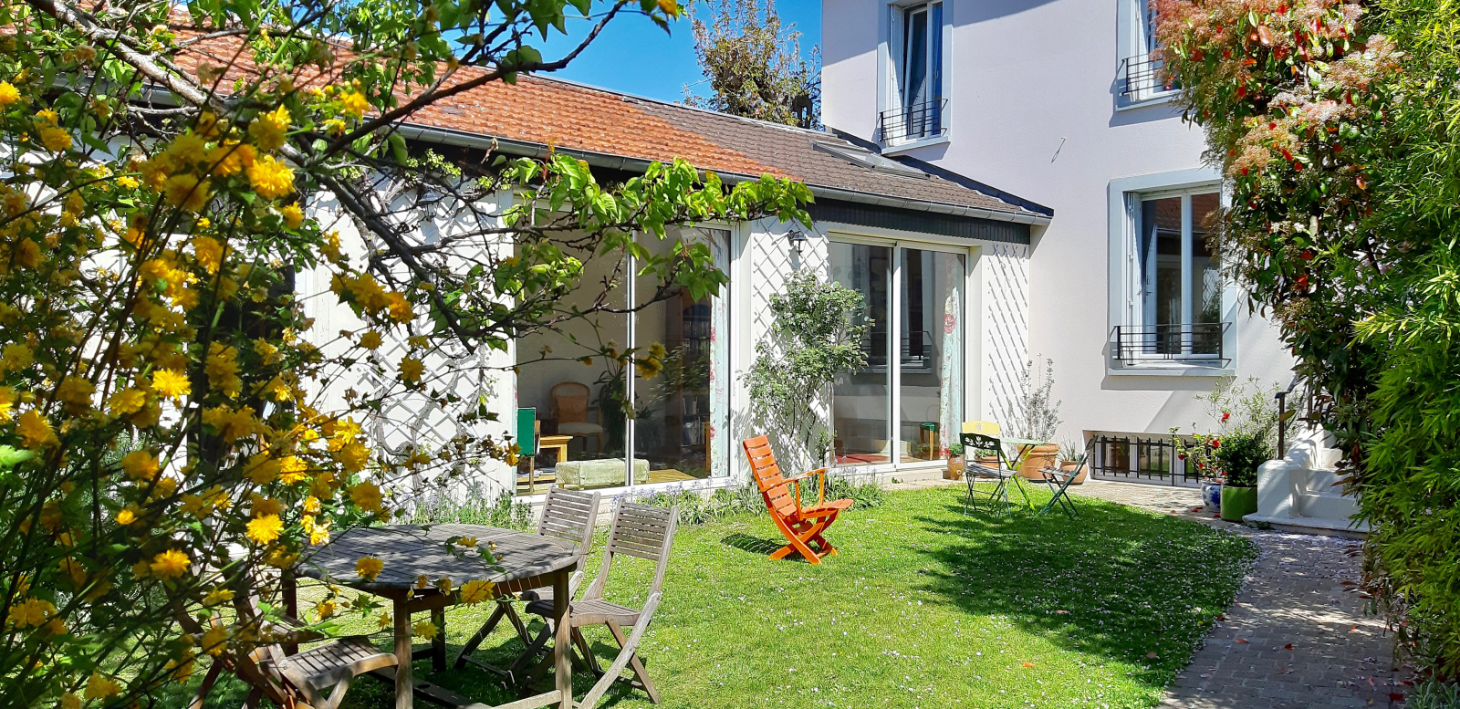 Au bout d'une petite allée piétonne bucolique, dans une ambiance charmante et intime, belle maison ancienne en parfait état général tournée vers son jardin ensoleillé, ultra calme et sans aucun vis à vis.