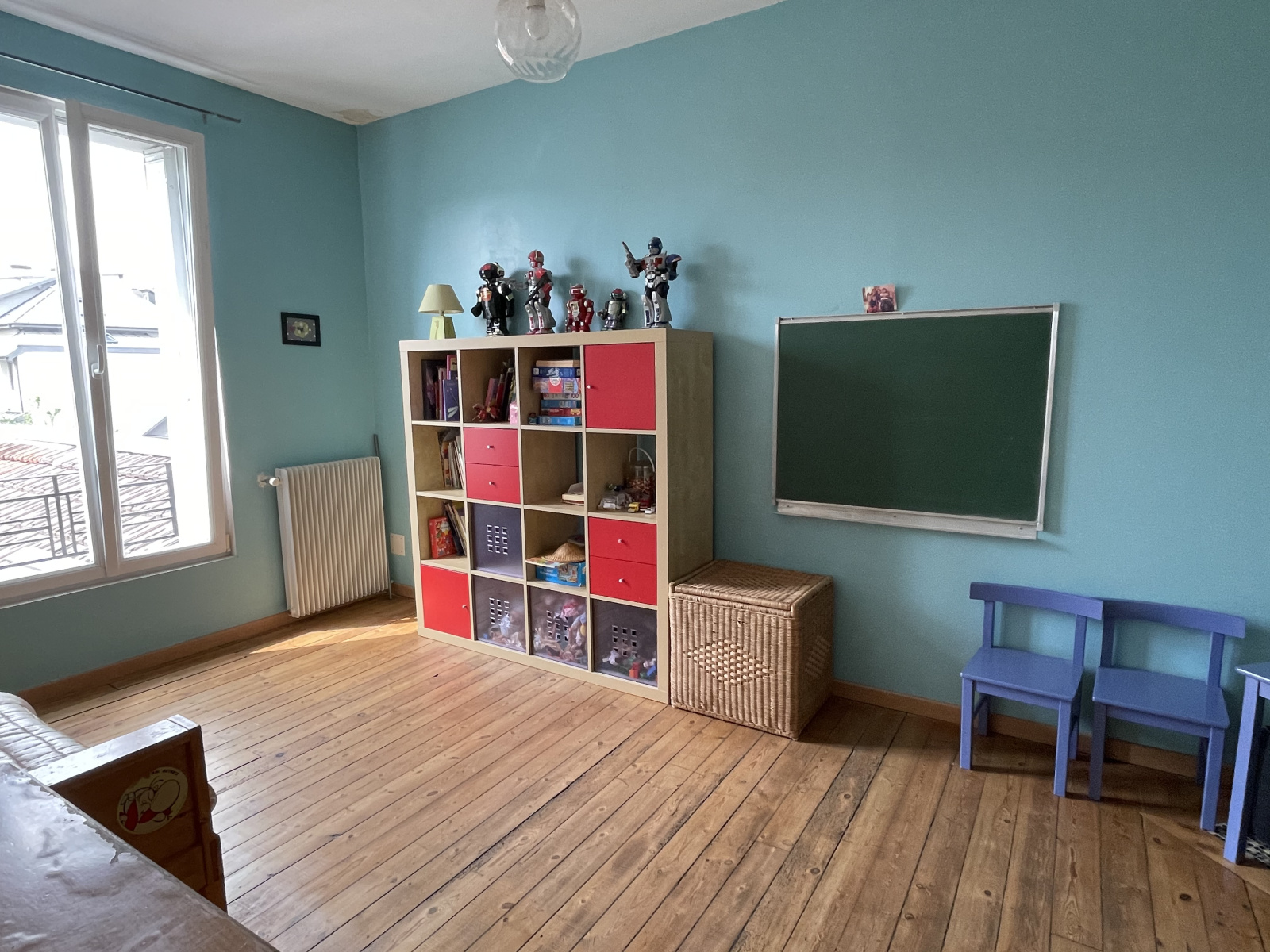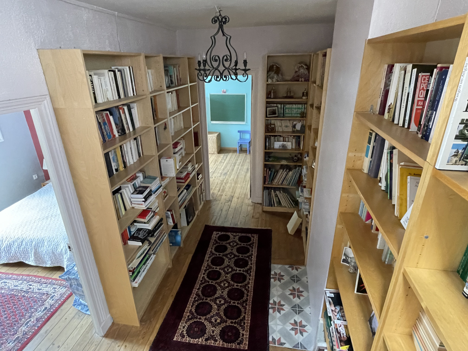 Au premier étage, un grand palier bibliothèque ou bureau, 3 belles chambres lumineuses et une salle de bains avec wc.