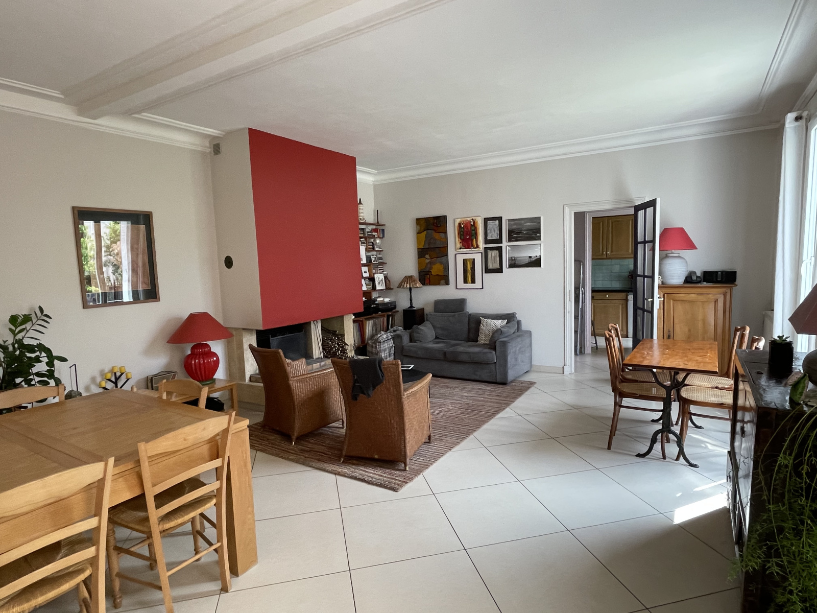Au rez-de-chaussée, la pièce de vie de 60 m² est composée d'un salon cathédrale ouvert sur le jardin et une grande salle à manger et séjour avec belle cheminée. Cuisine indépendante et équipée et wc avec lave mains.
