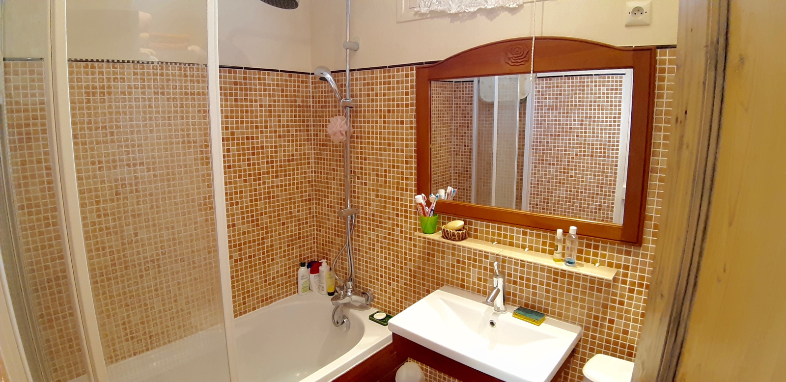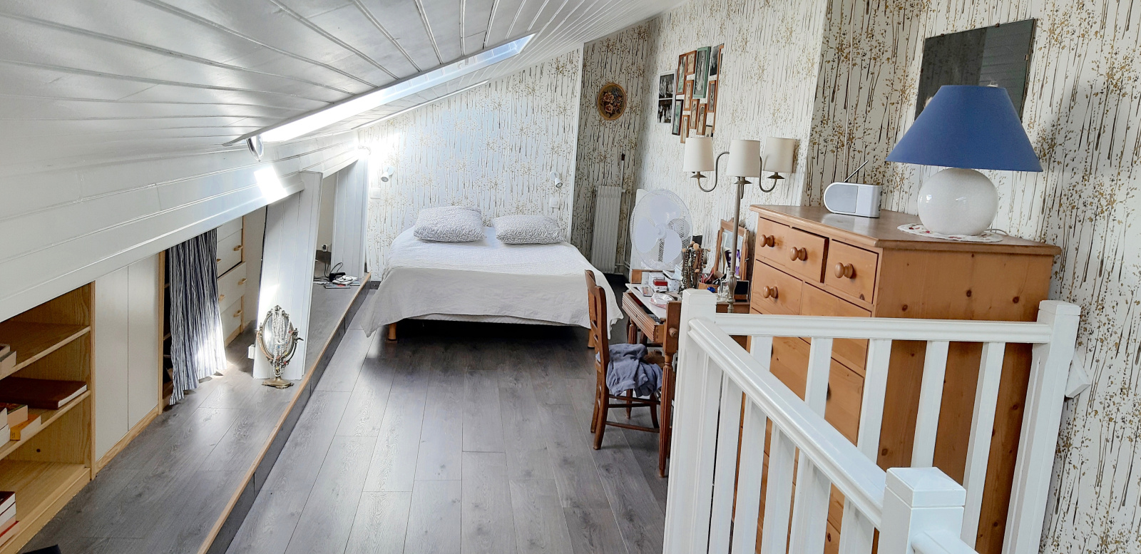Au second étage, une chambre mansardée avec de multiples rangements et une salle d'eau avec wc.