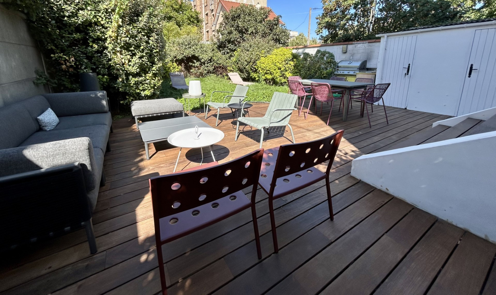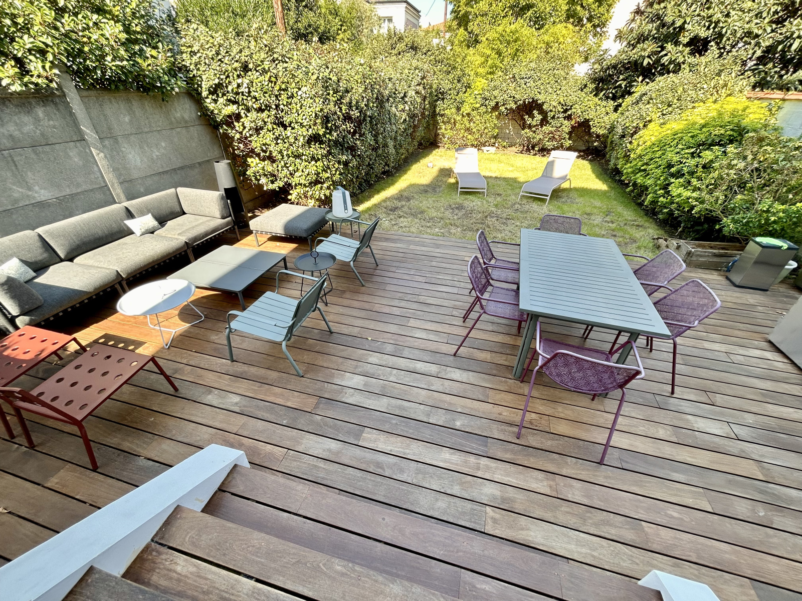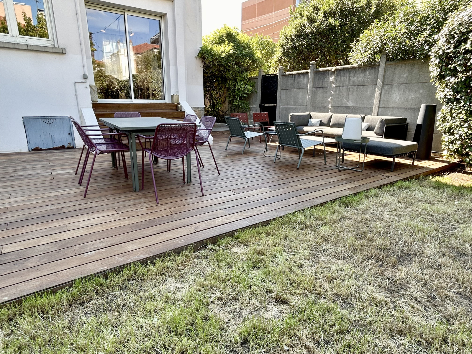 Entrée, wc, double séjour avec cheminée, cuisine / salle à manger ouvrant sur un jardin avec une superbe terrasse.