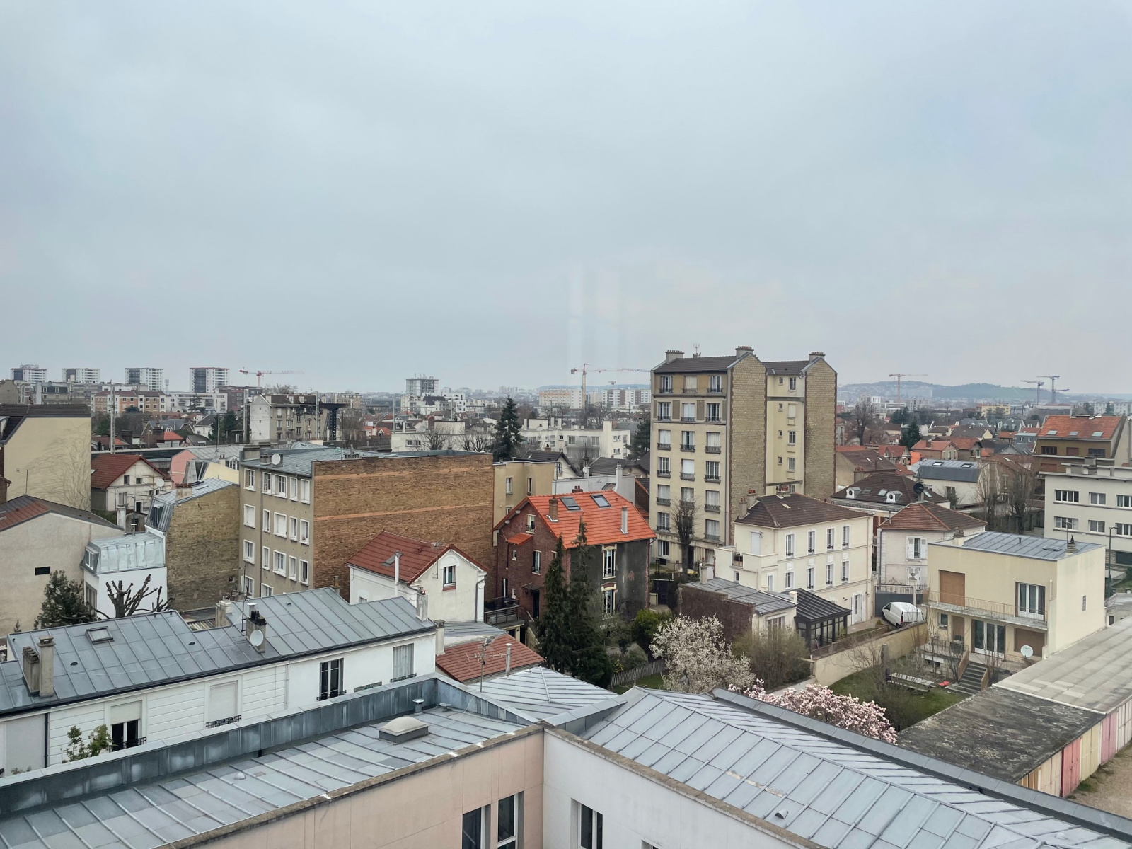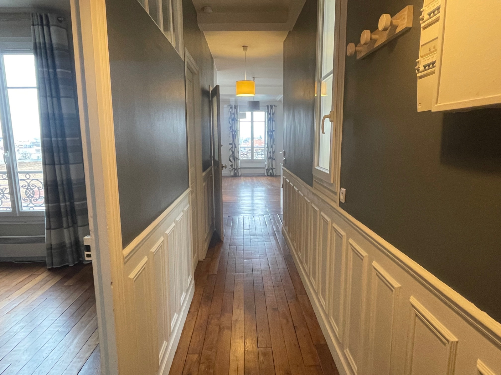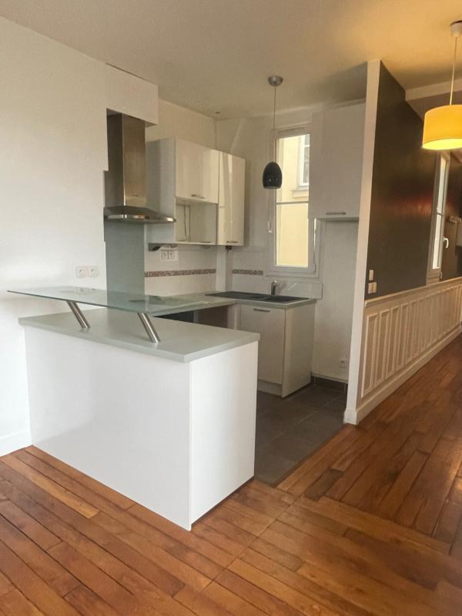 COLOMBES - CENTRE. Dans très bel immeuble en pierre, au cinquième étage avec ascenseur, chaleureux appartement de deux pièces ayant gardé tout le charme de l'ancien : entrée, chambre, séjour avec cuisine américaine équipée, salle d'eau avec wc.Une cave en sous-sol complète ce bien.